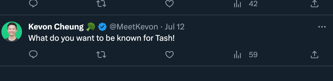 Not long after reading Known, I posted what I had learned and my intention to go through Mark's Known Personal Branding Workbook on X. I received a response from Kevon Cheung, "What do you want to be known for, Tash?"